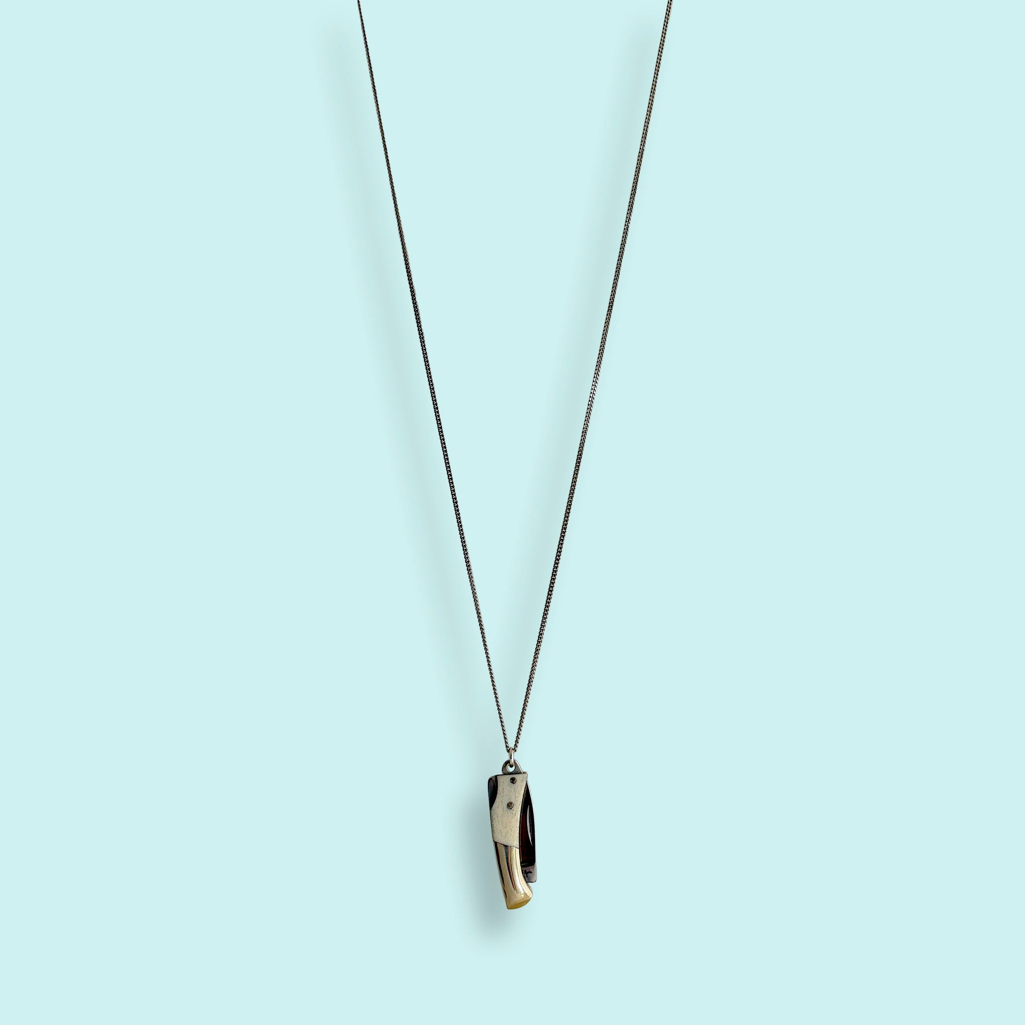 Curvilinear Bone Lockback Knife on Silver Chain Necklace